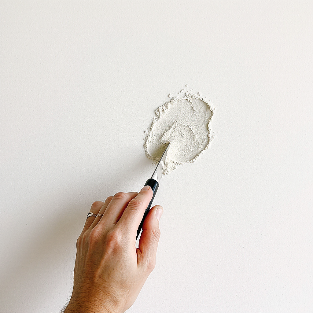 Once completely dry (usually 24 hours), sand the area with 120-grit sandpaper until it’s level with the surrounding wall. Then go over it again with 220-grit for a smooth finish. Run your hand across it — if you can’t feel the edge, you’re ready.